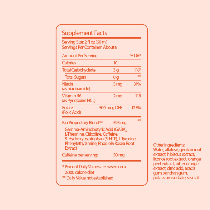 Kin Spritz was created to enhance your daily ritual, to provide power to your mind so you can rise. We are mindful that some ingredients may not be suitable with each different phase of your life, so it's best to consult your doctor if you are pregnant, breastfeeding, or taking medications.